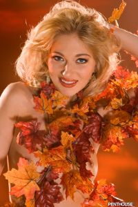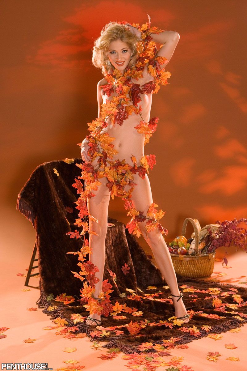 Nevaeh - Nevaeh is ready for the upcoming holiday season as she rolls around naked on a pile of autumn leaves and garlands.